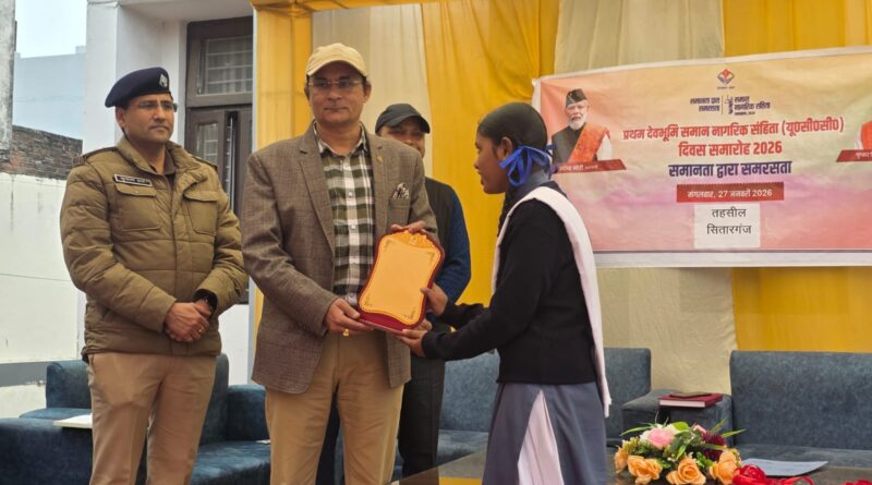 सितारगंज। समान नागरिक संहिता यूसीसी के एक वर्ष पूर्ण होने पर तहसील परिसर में बहुउदेशीय शिविर लगाया गया। जिसमें विवाह पंजीकरण शिविर को प्राथमिकता दी गई। इस दौरान 27 शादीशुदा जोड़ों ने विवाह पंजीकरण के लिए आवेदन किया। मंगलवार को तहसील परिसर में भाजपा जिला अध्यक्ष कमल जिंदल, एसडीएम रविंद्र कुमार जुवाठा, तहसीलदार हिमांशु जोशी, कोतवाल सुंदरम शर्मा आदि अधिकारियों की उपस्थिति में रही। यहां स्कूली विद्यार्थियों ने समान नागरिक संहिता यानी यूसीसी वार्षिक उत्सव पर आमजन को विस्तार पूर्वक जानकारी दी। विद्यर्थियों ने अपने वक्तव्य में कहा कि समान नागरिक ‘संहिता कानून राज्य में सबसे पहले लागू हआ है।
