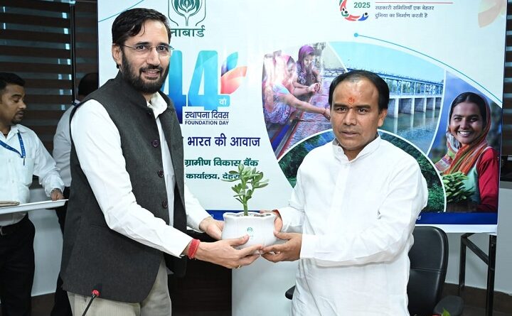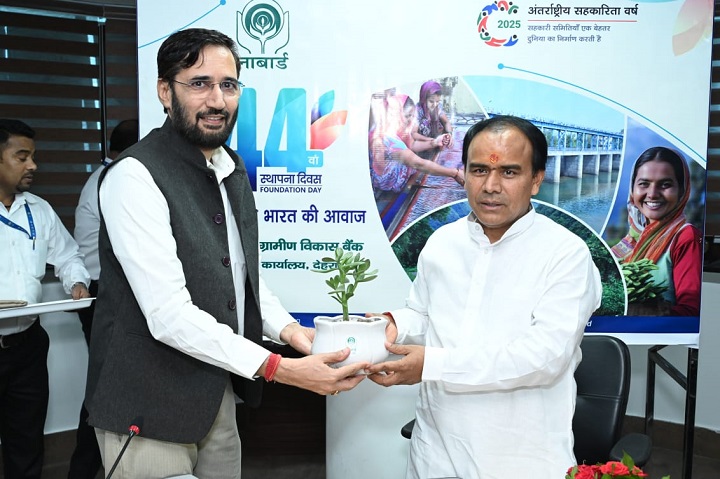 देहरादून : राष्ट्रीय कृषि और ग्रामीण विकास बैंक (नाबार्ड) ने सोमवार को राष्ट्र सेवा के 44वें वर्ष में प्रवेश किया है. इस विशेष अवसर पर माननीय सहकारिता, स्वास्थ्य एवं उच्च शिक्षा मंत्री डॉ. धन सिंह रावत की अध्यक्षता में आईटी पार्क, सहस्त्रधारा रोड स्थित नाबार्ड, उत्तराखण्ड क्षेत्रीय कार्यालय में नाबार्ड का 44वां स्थापना दिवस समारोह हर्ष और उल्लास के साथ मनाया गया. इस अवसर पर श्री रावत नें स्वयं सहायता समूह एवं कृषक उत्पादक संगठनों द्वारा लगाए गए स्टालों का अवलोकन किया एवं उनके द्वारा बनाए गए उत्पादों की सराहना की।