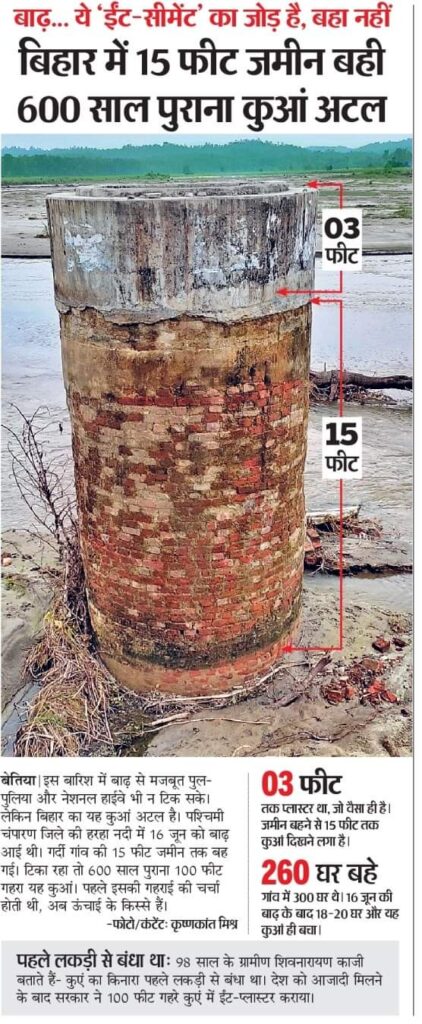 बाढ़ में 15 फ़ीट गहरी जमीन बही, दिखा 600 साल पुराना कुआं
