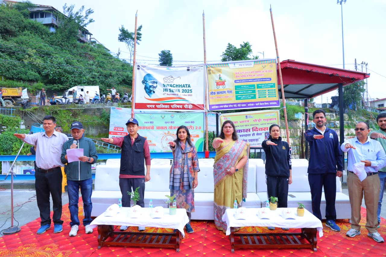 रैली उपरांत जिलाधिकारी ने पौड़ी बस स्टेशन परिसर में नगर पालिका अध्यक्षा, अधिकारियों, जनप्रतिनिधियों, कर्मचारियों, स्कूली छात्र-छात्राओं और आमजन के साथ व्यापक सफाई अभियान चलाया और उपस्थित सभी को स्वच्छता की शपथ दिलाई। इस अवसर पर पर्यावरण मित्रों को रेनकोट तथा दुकानदारों को डस्टबिन वितरित किए गए, ताकि स्वच्छता प्रयास स्थायी और प्रभावी हो सकें।