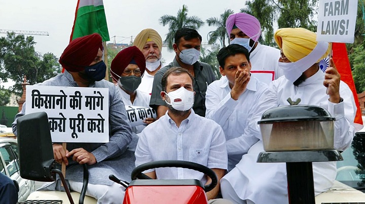 बिना नम्बर के ट्रैक्टर से संसद पहुंचने पर घिरे राहुल गाँधी